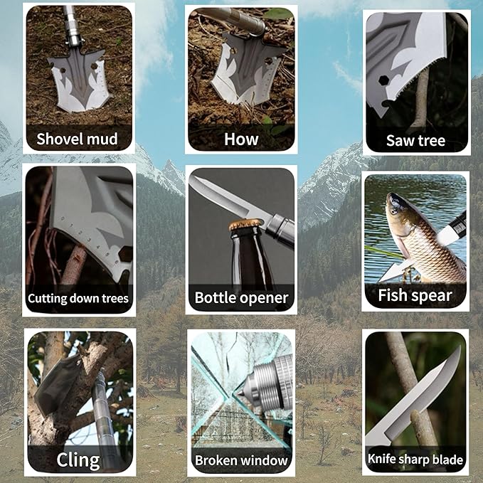 - 【Perfect Gift for Outdoor Enthusiasts】 This versatile multitool makes an ideal gift for camping, hiking, backpacking, fishing, hunting, gardening, and other outdoor adventures. Designed for both casual users and professionals, it's perfect for gardeners, survivalists, hunters, hikers, and campers. Its compact, foldable design also makes it an essential entrenchment tool for field survivalists, disaster recovery teams, and truck drivers