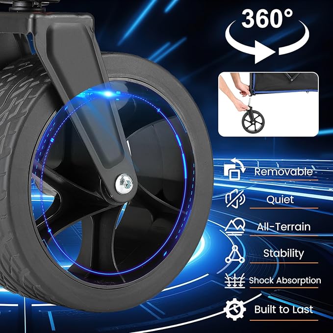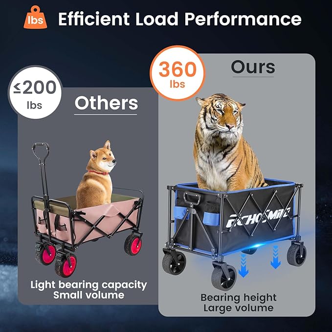 - 【Glide Smoothly & Steer Freely】Equipped with 6.7'' diameter wheels and 3'' wide treads, plus a dual-bearing system for smooth motion, the front wheels rotate 360° for maximum control. Easily handles sand, grass, and uneven ground, making pulling or pushing effortless, even when fully loaded.