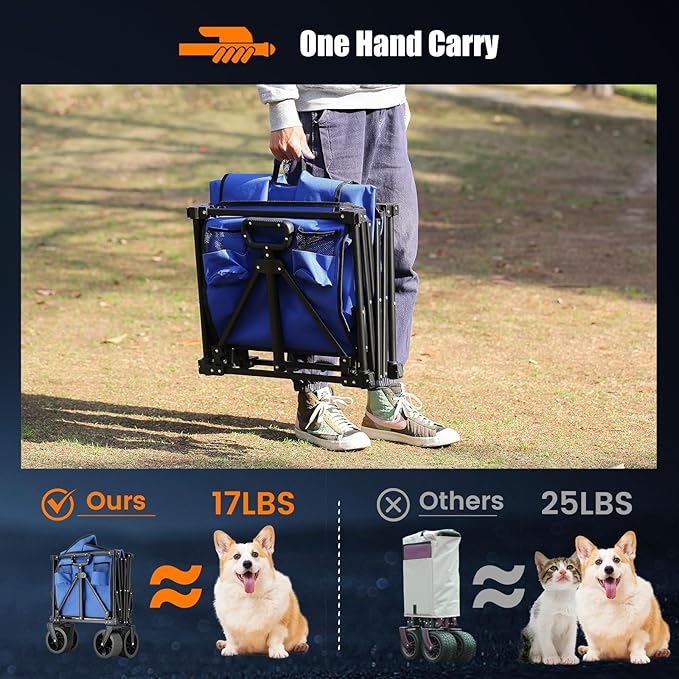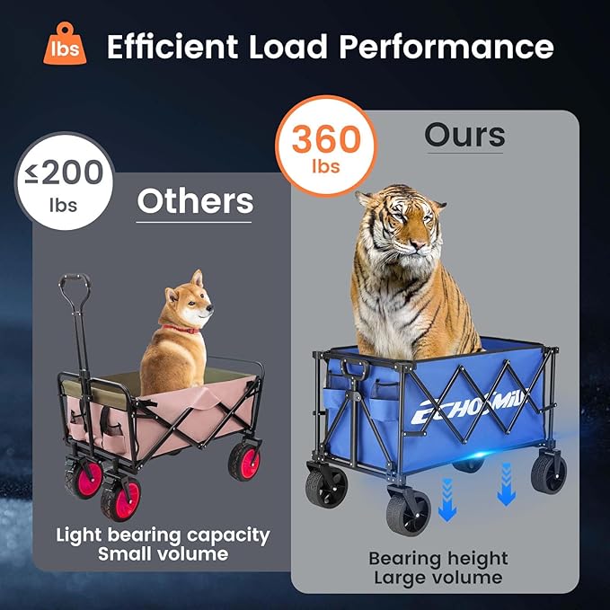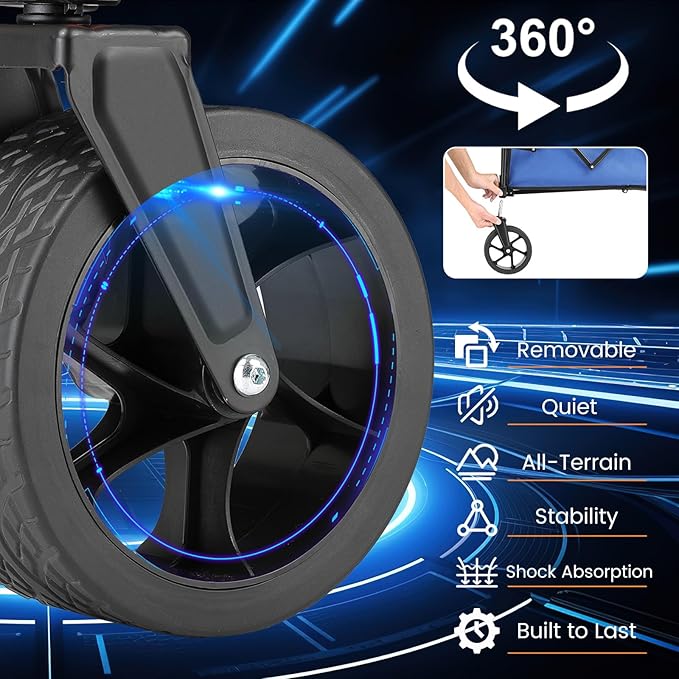 - 【Glide Smoothly & Steer Freely】Equipped with 6.7'' diameter wheels and 3'' wide treads, plus a dual-bearing system for smooth motion, the front wheels rotate 360° for maximum control. Easily handles sand, grass, and uneven ground, making pulling or pushing effortless, even when fully loaded.