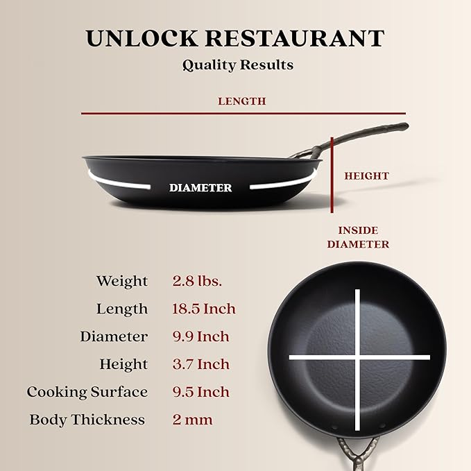 - Value in Every Detail: Alva Artist is a beautiful range dedicated to passionate chefs. The natural patina layer on the blue carbon steel pan is constantly improving. The darker the coloring, the more effective the nonstick layer. Our pan is ready to use with its uncoated blue carbon steel material and pre-seasoned cooking surface. Our cast stainless steel handle with hammered pattern ensures low thermal conductivity which keeps the handle cool during cooking and gives the handle a firm grip.