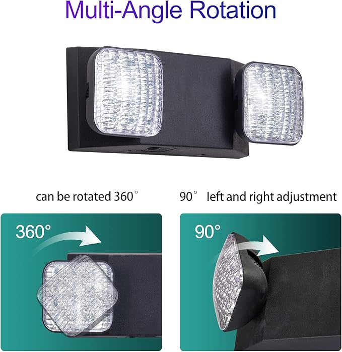 - 【US STANDARD】The emergency light is made of injection-molded thermoplastic ABS shell, UL-94V-0 flame retardant, so that the emergency lights with battery backup can continue to operate in the event of a fire or earthquake. Each adjustable lamp head is equipped with super bright LED lights to illuminate every corner in the dark.