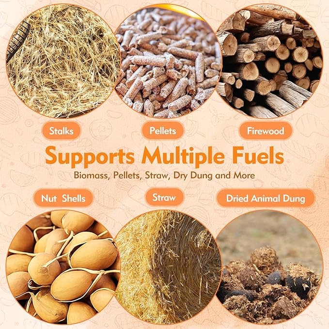 - 🌿【Compatible with Various Solid Fuels】This stove supports firewood, dry leaves, nutshells, hay, and dried animal dung—ideal for outdoor survival and off-grid cooking.