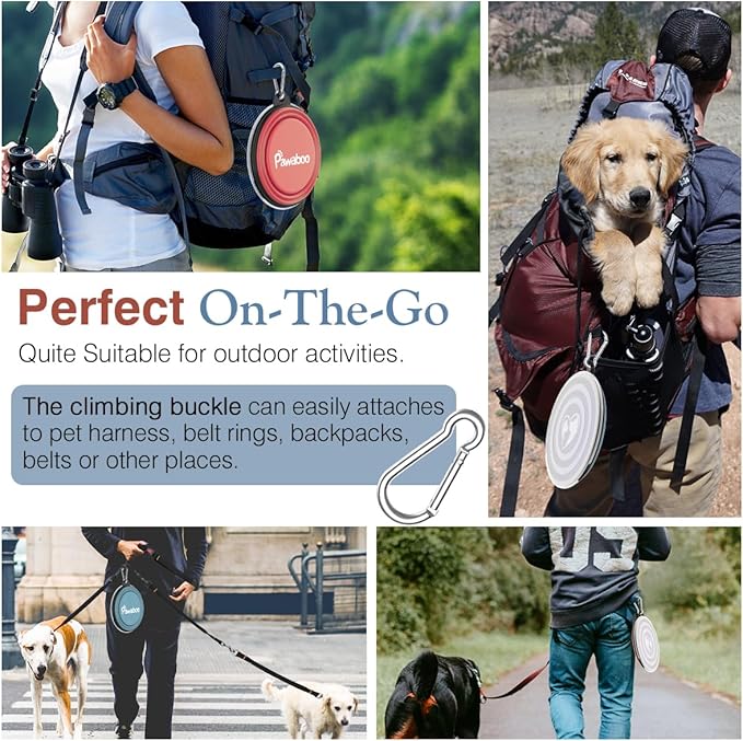 - 【 Portable & Convenient 】: Each bowl comes with a carabiner for easier portability, can be attached to belt loop, hiking backpack, leash, harness or other locations. These dog food bowls are suitable for walking, traveling, hiking, camping, or indoor use at home.