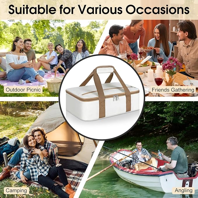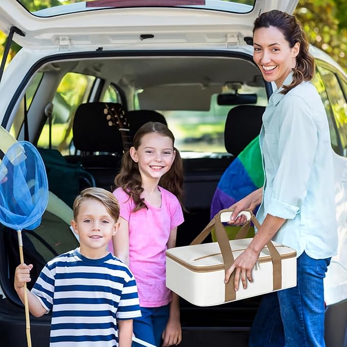 Insulated Casserole Carrier, Portable Casserole Carrier for Hot or Cold Food Lunch Tote Warmer or Cooler Bag, Lasagna Lunch Bag for Potluck Parties- Fits 9" x 13" Baking Dish-Beige