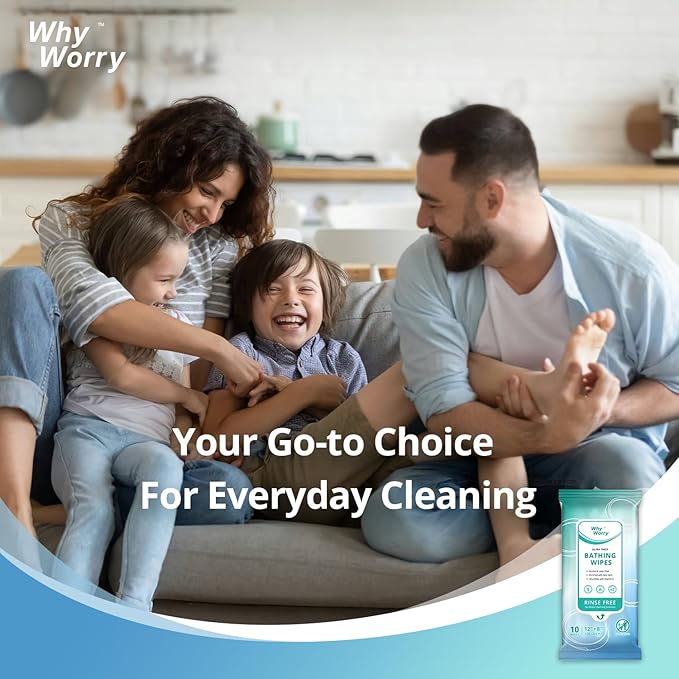 - EFFECTIVE GENTLE CLEANSING. WhyWorry wet bathing wipes are expertly designed to deep cleanse any part of your body without causing any discomfort, even for sensitive skins. Ideal for camping, gym, travel & any time a shower or wash facilities are unavailable. The 10 PCs pack can easily fits in any pocket or bag for on-the-go convenience.