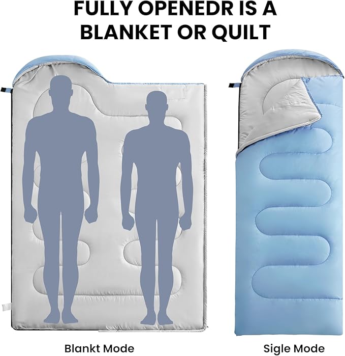 - DESIGNED FOR COOL/COLD WEATHER : Comfort temperature is 41℉-68℉(5℃-20℃) Recommended limit temperature is 30℉-77℉(-1℃-25℃). Moreover, these bags also have a waterproof, weather-resistant design to keep you warm even in extreme conditions and prevent you from any dampness - this is achieved through double-filled technology