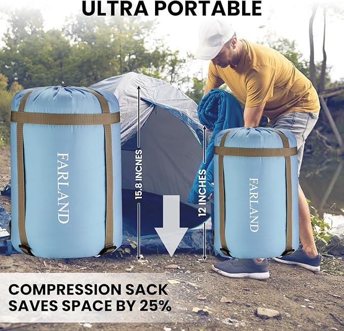 FARLAND Sleeping Bags 30℉ for Adults Teens Kids with Compression Sack Portable and Lightweight for 3-4 Season Camping, Hiking,Waterproof, Backpacking and Outdoors