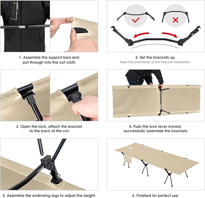 - 🏕️ 【Premium Durable 1000D Fabric】 Campnacht camping cot is made of anti tear 1000D oxford cloth for excellent strength and easy cleaning, which ensures a long service life and allows the bed surface to remain tight and comfortable. 1000D oxford fabric cloth is more breathable and is neither too hard nor too soft, giving you the perfect support to maintain the ideal sleeping position.