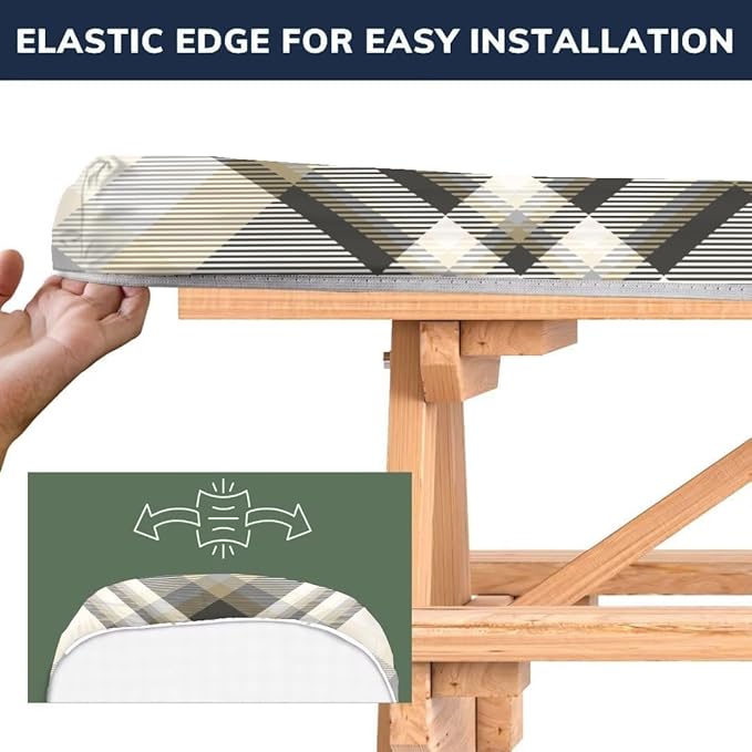 - [Elastic Edging & Windproof Design] Features all-around elastic hemming on both picnic table cloth and bench protectors for quick installation. Special tension design keeps covers firmly in place during windy conditions, protecting your outdoor furniture from weather elements.