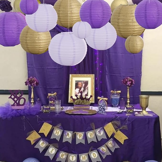 BEISHIDA 16 Pcs Purple Gold Paper Lanterns,Hanging Decorative Chinese Japanese Round Paper Lantern Lamp for Graduation Bachelorette Birthday Party Decoration
