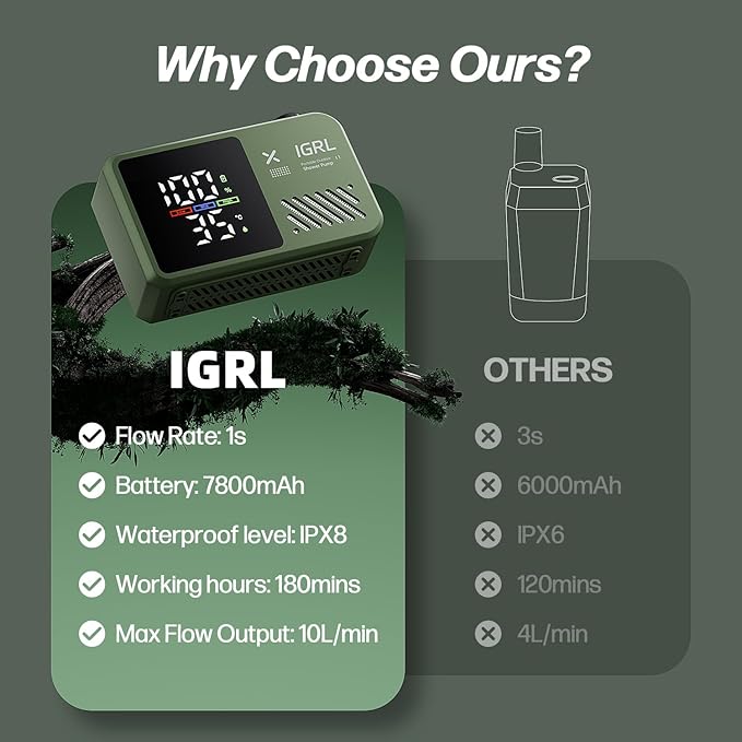 - 【Upgraded 7800mAh Battery & Long Runtime】Provides up to 180 minutes of continuous operation, enough for 8 to 10 comfortable showers. Features a Type-C charging port compatible with phone adapters, power banks, laptops, and car USB. Includes a silicone waterproof cover to ensure safe outdoor charging.