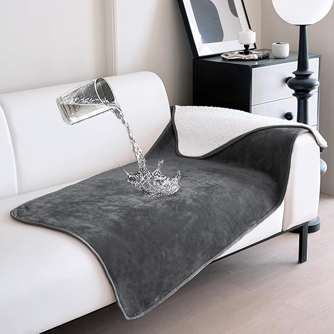 gogobunny Dog Blanket, Waterproof Reversible Sherpa Fleece Throw Blanket, Furniture Cover for Bed, Couch, Sofa Protection from Liquid Pee and Pet Fur of Puppy, Cat (Dark Grey, 30x70 inches)