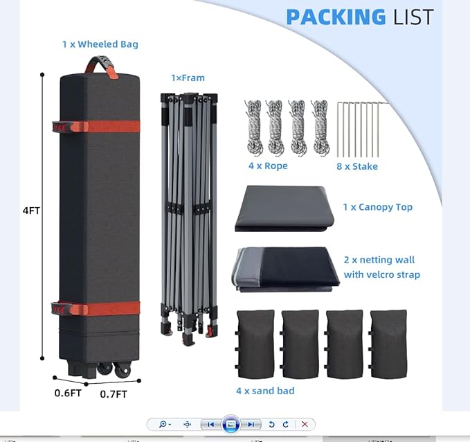 - Easy to Transport: The outdoor canopy tent comes with a wheeled bag, which makes storage and transport a breeze. The compact storage size fits most vehicles, and one person can lift/roll the wheeled bag easily