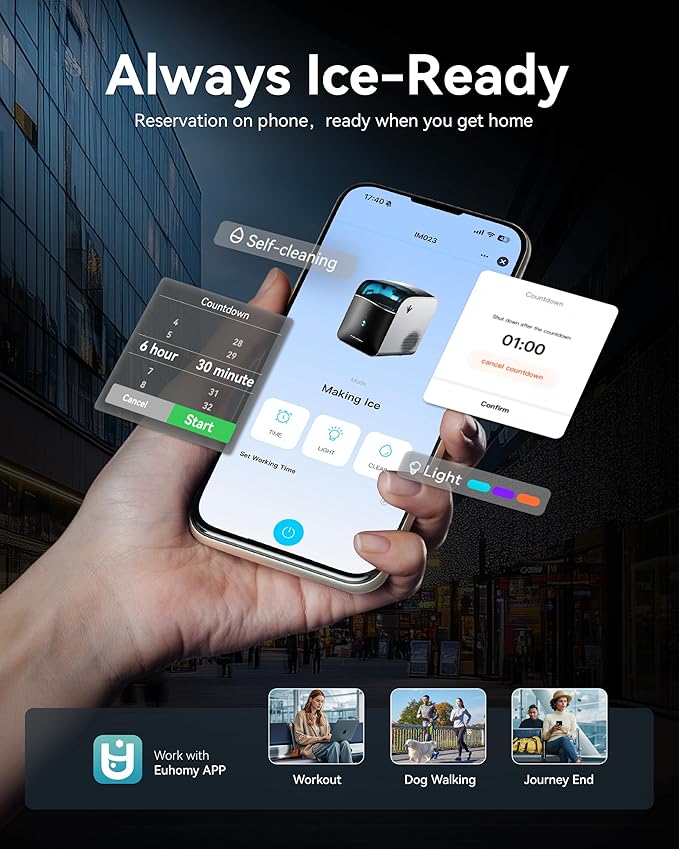 - Smart Wi-Fi & App Control: Stay connected via Bluetooth and pair your nugget ice maker countertop with the dedicated app. Use voice commands via Alexa. Once online, you can remotely start ice production and enjoy fresh, ready-to-use ice anytime—wherever you are!