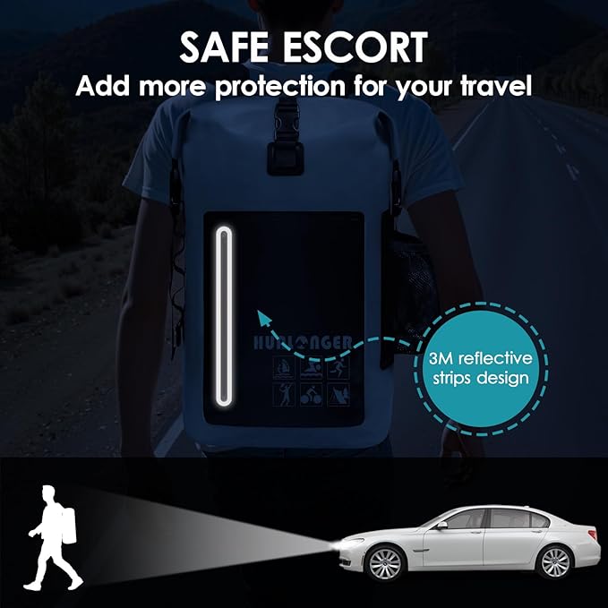 - Dry Bags Waterproof: Features a front zippered pocket with reflective strips for easy access to small items and enhanced safety in low light. Includes side hooks and a water bottle pocket. The smooth surface is easy to clean—just rinse and wipe after use. Perfect for hiking, camping, or beach trips