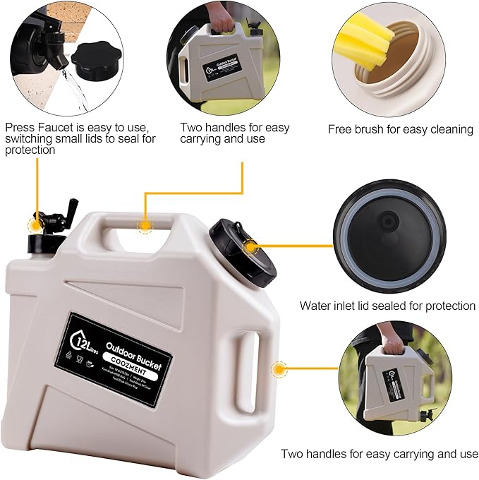 - 【Convenient Water Dispensing Design】: The Water jug has a 4" wide diameter bucket spout for easy cleaning and filling, and a unique faucet on the other part to control the dispensing speed. Compared to other Containers, you don't have to struggle to unscrew the lid, just simply press or lift to dispense water.