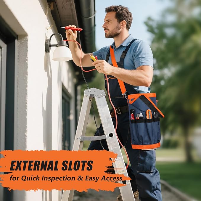 - Unique Shoulder Belt: The tool tote has a 45-inch adjustable shoulder strap, suitable for men of different heights. Comfortable handle provide additional carrying options.
