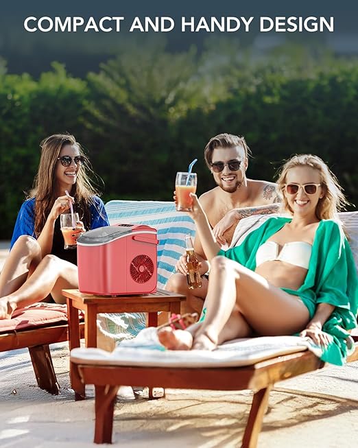 Ice Maker Countertop, Efficient Easy Carry Ice Machine, Self-Cleaning Ice Maker with Ice Scoop & Basket, 9pcs/ 8mins 26.6Lbs Per Day for Home/Office/Kitchen,RED