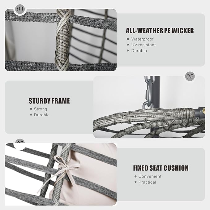 - 【Comfortable】Our Double Hanging Egg Chair with Stand redefines comfort and style, offering an oversized, ergonomically designed seat for unparalleled relaxation. Unwind for extended periods with double thick cushion and headrest.