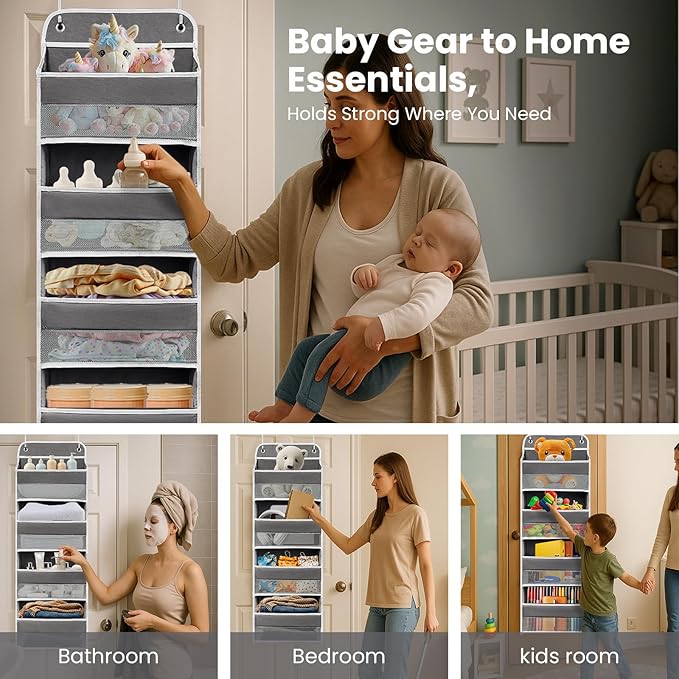 - ▶【Multifunctional Door Storage】: Multifunctional hanging door organizer is perfect for expanding storage space. Suitable for closet organizers and storage, bathroom organizers and storage, toy storage organizer, placed in children's room, storage room, office, laundry room, bedroom, bathroom, living room, storage room, dormitory, nursery and other areas where toys, diapers, wipes, baby towels, socks and other items need to be stored. Designed to make rational use of space.