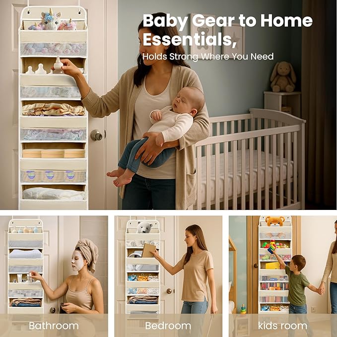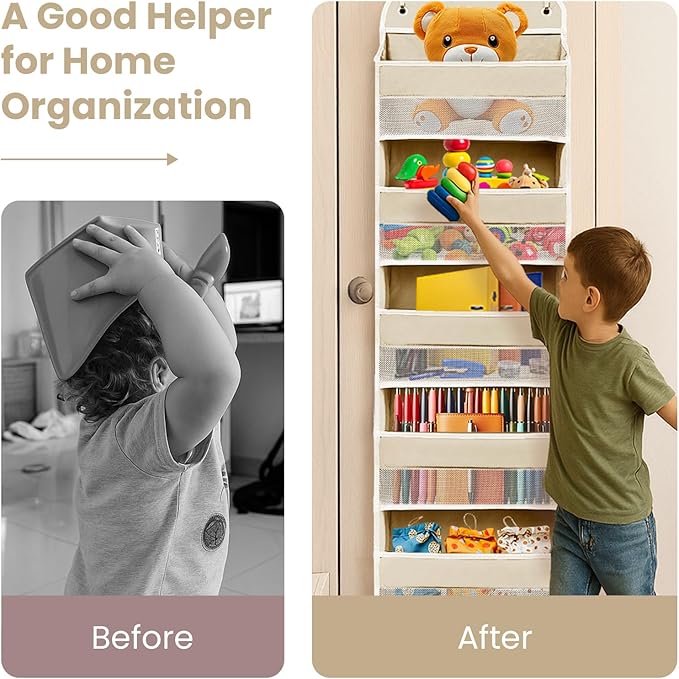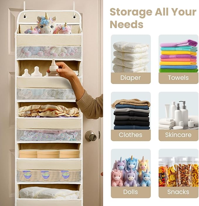 - ▶【Multifunctional Door Storage】: Multifunctional hanging door organizer is perfect for expanding storage space. Suitable for closet organizers and storage, bathroom organizers and storage, toy storage organizer, placed in children's room, storage room, office, laundry room, bedroom, bathroom, living room, storage room, dormitory, nursery and other areas where toys, diapers, wipes, baby towels, socks and other items need to be stored. Designed to make rational use of space.