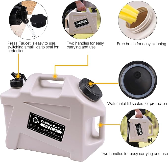 - 【Convenient Water Dispensing Design】: The Water jug has a 4" wide diameter bucket spout for easy cleaning and filling, and a unique faucet on the other part to control the dispensing speed. Compared to other Containers, you don't have to struggle to unscrew the lid, just simply press or lift to dispense water.