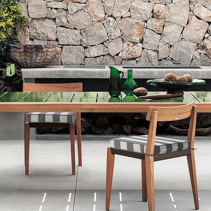 Square Corner Seat Cushions, 18.5" x 16" x 3", Set of 4, Indoor Outdoor Water Repellent Universal Chair Pads with Ties for Patio Furniture, Garden Deck Dining Chairs, Gray Stripe