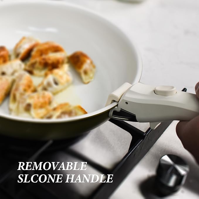 3-ply Stainless Steel Frying Pan with lid,With Titanium Ceramic Coating,Detachable Handle,Dishwasher and Induction&Oven Safe,Compatible All Cooktops,10 inch (10inch+lid+frying spatula+loofah)