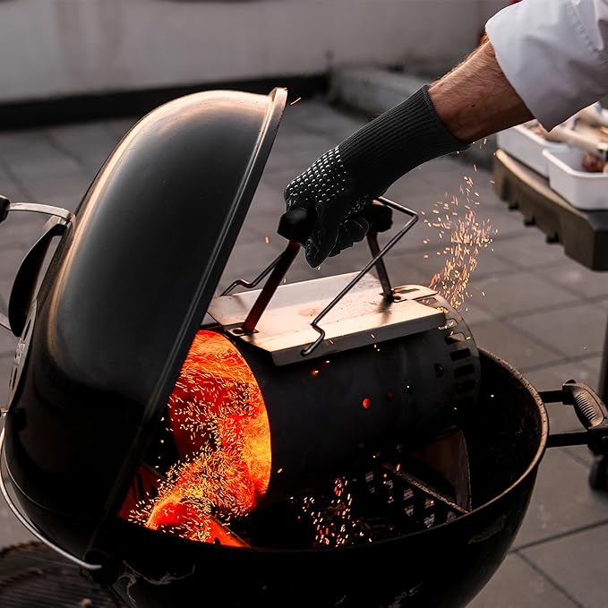 - 🧼 Easy-Clean & Universal Fit – Machine washable; stretchable cuff (up to 12 inches) fits most hand sizes; ideal for grilling, baking, welding, and fireplace use.