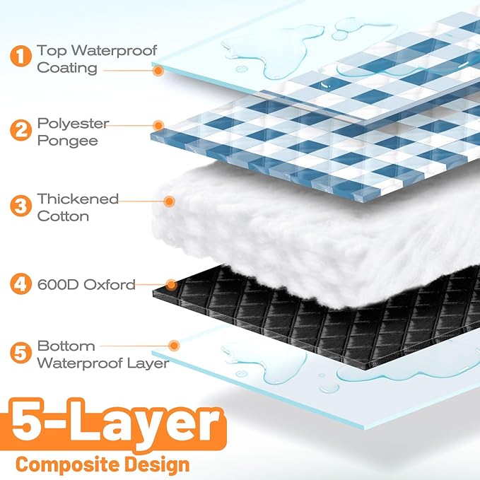- Water & Dirt Resistant: Our camping blanket is made for outdoor conditions. The top layer is water-repellent and stain-resistant. Just shake off drinks, dirt, or sand after use. The waterproof base blocks moisture and insulates against heat or cold from the ground, keeping you dry and comfortable at the park, beach, campsite, or backyard.