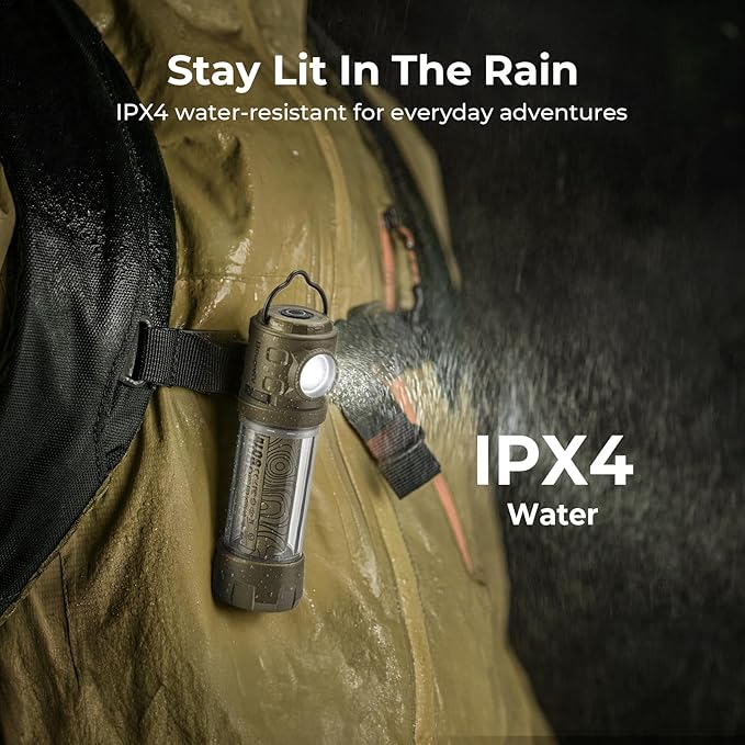 - Multi-functional & Weatherproof: Use this portable camping lantern as a flashlight, table lamp, hanging light, backpack attachment, or magnetically mounted. With an IPX4 waterproof rating, it performs reliably in rain, making it ideal for any outdoor activity