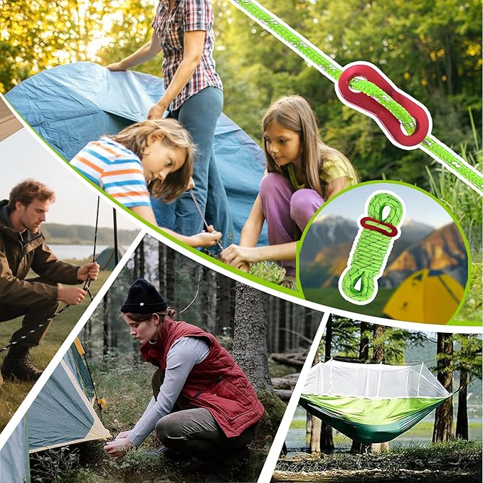 - Muilti-purpose Rope: This versatile cord can works as tent guy lines, bank line, tarp rope, zipper pull cord, clothesline, hammock support, or emergency gear.Great for camping, backpacking, biking, fishing and other outdoor activities