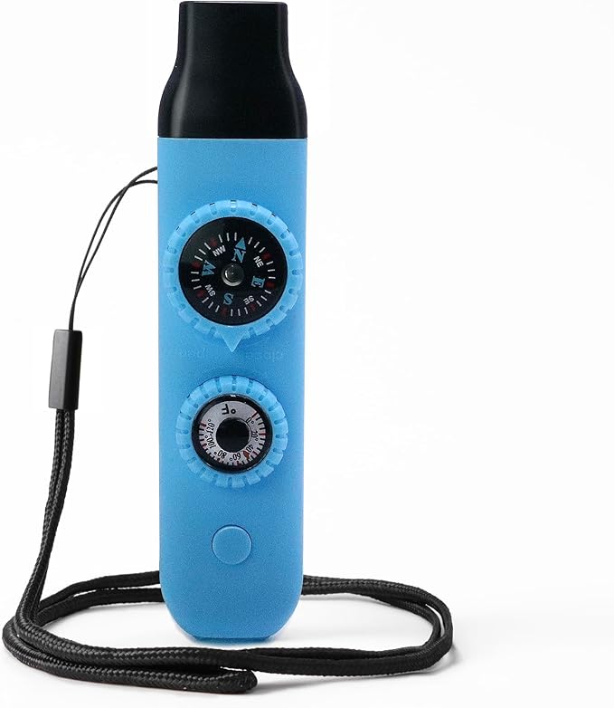 - The 7-in-1 Safety Whistle sets 7 functions including Emergency Whistle, Compass, Thermometer, LED Signal Light, Magnifying Glass, Reflector and Sealed Warehouse with good playability (The uniquely designed miniature built-in storage bin can be used to store important personal information, allowing rescuers to grasp your situation at the first time) (NOTE: If you need help in an emergency, you can try whistling softly, which is louder than whistling at full force)