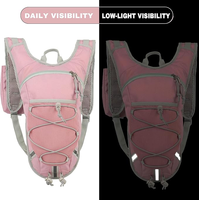 - 【Lightweight & Comfortable for Long Runs】 This 2L hydration backpack features a minimalist design with a main compartment for the water bladder, offering a lightweight fit that reduces strain during running, cycling, hiking, and outdoor workouts