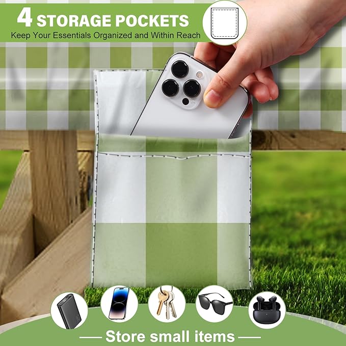 - 4 Storage Pockets: This tablecloth is not only stylish but also practical. The four pockets are perfect for storing your napkins, cell phones, or small snacks, keeping everything you need within arm's reach. No more fumbling through bags - everything is neatly stored