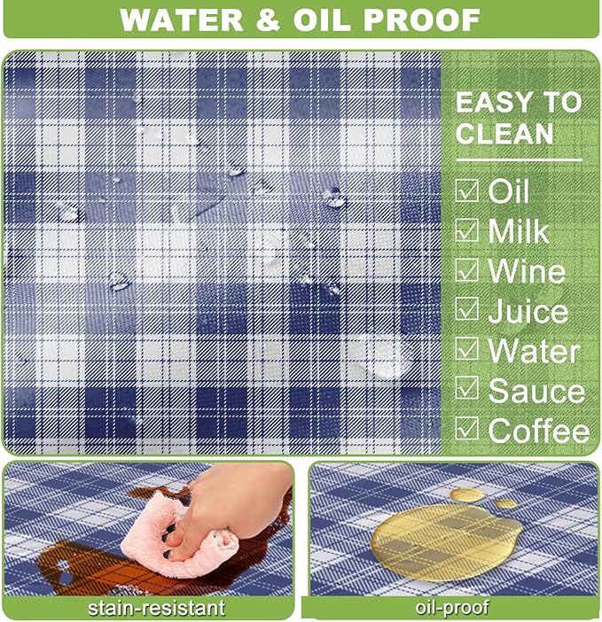 - Oil and Water Proof: Crafted from high-quality polyester, ensures no spills or stains soak in and easy to clean - just wipe it down with a damp cloth, and it's good as new. The material is also colorfast, wrinkle resistant and wear resistant, and whether used indoors or outdoors, this tablecloth will ensure that your table will still look vibrant after multiple uses
