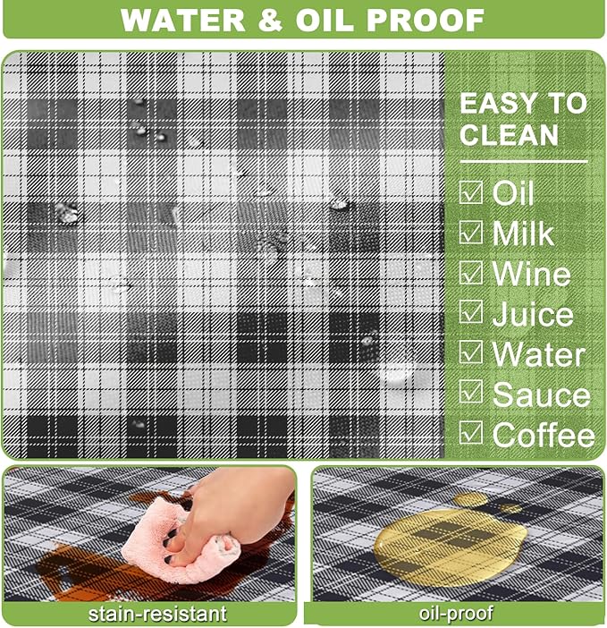 - Oil and Water Proof: Crafted from high-quality polyester, ensures no spills or stains soak in and easy to clean - just wipe it down with a damp cloth, and it's good as new. The material is also colorfast, wrinkle resistant and wear resistant, and whether used indoors or outdoors, this tablecloth will ensure that your table will still look vibrant after multiple uses