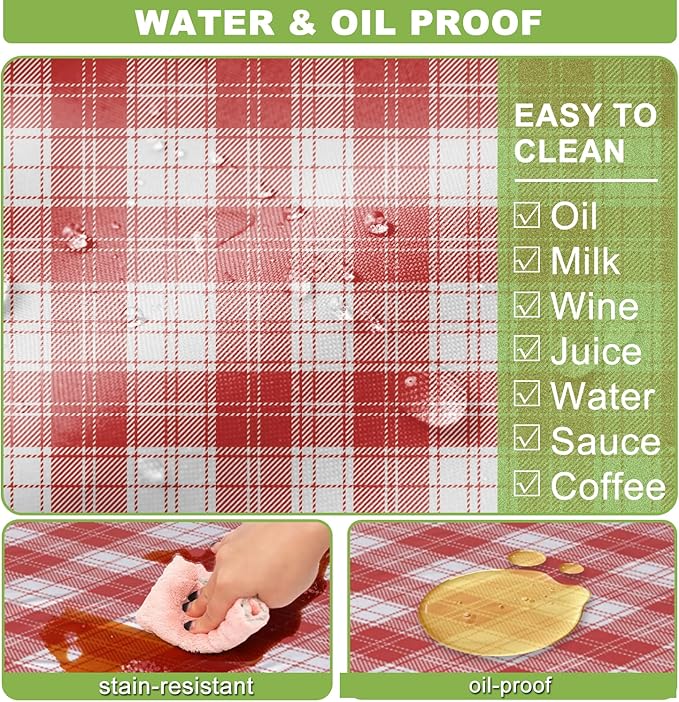 - Oil and Water Proof: Crafted from high-quality polyester, ensures no spills or stains soak in and easy to clean - just wipe it down with a damp cloth, and it's good as new. The material is also colorfast, wrinkle resistant and wear resistant, and whether used indoors or outdoors, this tablecloth will ensure that your table will still look vibrant after multiple uses