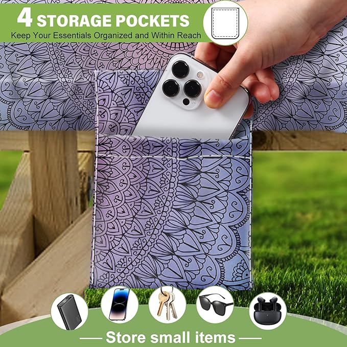 - 4 Storage Pockets: This tablecloth is not only stylish but also practical. The four pockets are perfect for storing your napkins, cell phones, or small snacks, keeping everything you need within arm's reach. No more fumbling through bags - everything is neatly stored