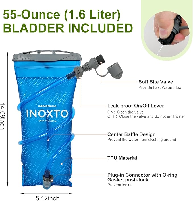 - 【Extensive Applications】Our hydration pack with water bladder is the perfect sports gear you hydrated while running, marathon, cycling, hiking, skiing, climbing, race and training or any adventure outdoors. This running hydration vest can be a are great companions for families and friends. IX INOXTO hydration backpack is always be there for you. If you have any problems, please reach out to us, we will reply within 24hrs.