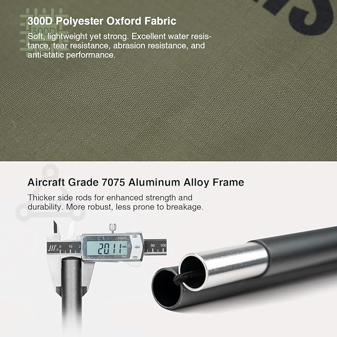 - โ ๐๐๐๐๐ฉ๐ฌ๐๐๐๐๐ฉ & ๐ฟ๐ช๐ง๐๐๐ก๐ - Crafted from heavy-duty 7075 aluminum alloy, the cot is ultra-light (5.7lbs/ 2.6kg) but can support up to 396lbs (180kg) of weight, a comfortable sleeping bed for large campers
