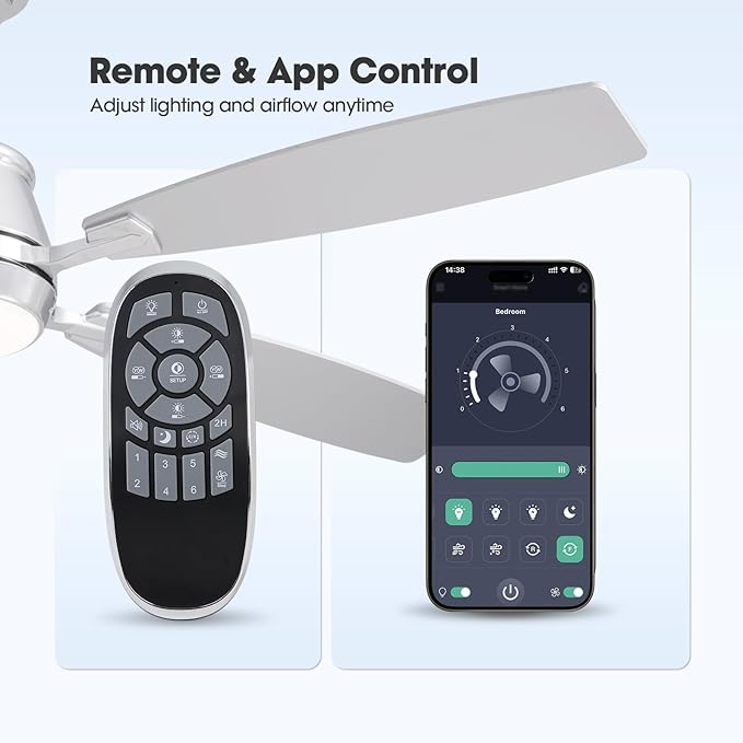 - 【Efficient 6-Speed Fan with Smart Controls】Choose from 6 adjustable speeds to suit your comfort. Easily control 52 inch ceiling fan with light using the included remote or our user-friendly app.