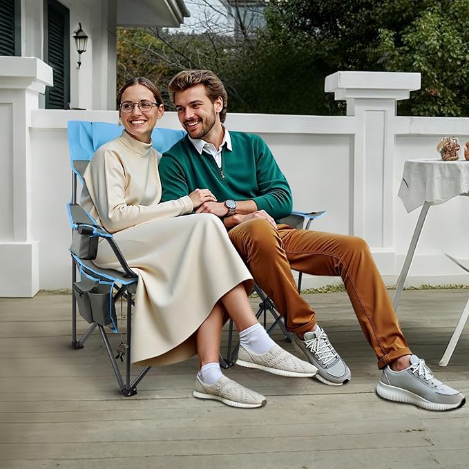 - ✨High Back Support & Oversized Comfort for Adults✨ This high back camping chair is designed as an oversized camping chair and 2 seat folding chair, perfect for adults seeking extra space—ideal for two people to relax without feeling squeezed. As one of the high back camping chairs for adults, its tall backrest eases neck and shoulder strain, while the generous dimensions solidify it as a top choice among oversized camping chairs. Whether you’re lounging as a camp chair or enjoying the outdoors, this 2 seat folding chair blends support and size seamlessly.