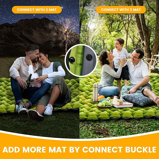 - 5. Expandable: Connect Multiple Camp Mattress Pad for Unlimited Uses. The single inflatable camping mat can link to create 2 beds or extra-large thick sleeping pad—ideal for couples, friends, or family weekend trips. Versatile scenarios: Camping tents, hiking, car camping, backyard naps, or gifts. More uses await your creativity! Oramoose provides 24-hour service to guarantee product quality and after-sales.