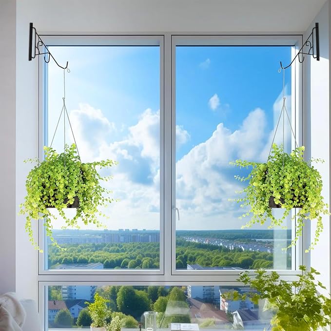 - Everything Included: Each set comes with 4 heavy duty black metal plant hanger, 10 screws, and 10 rubber plugs. The size of plant hook is 10 inches long x 7.8 inches high. Sufficient quantity offers cost-effective solution for multiple plant displays, making it as ideal housewarming gifts. Please kindly check the size before you purchase