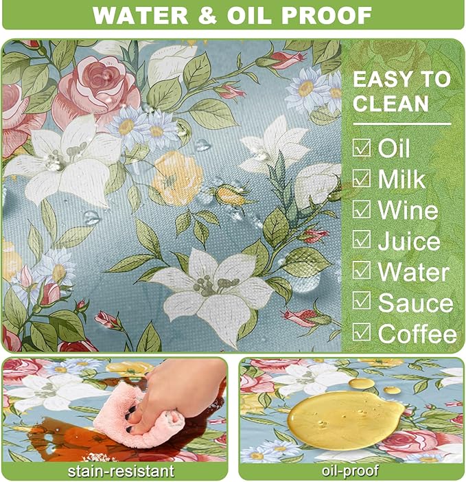 - Oil and Water Proof: Crafted from high-quality polyester, ensures no spills or stains soak in and easy to clean - just wipe it down with a damp cloth, and it's good as new. The material is also colorfast, wrinkle resistant and wear resistant, and whether used indoors or outdoors, this tablecloth will ensure that your table will still look vibrant after multiple uses