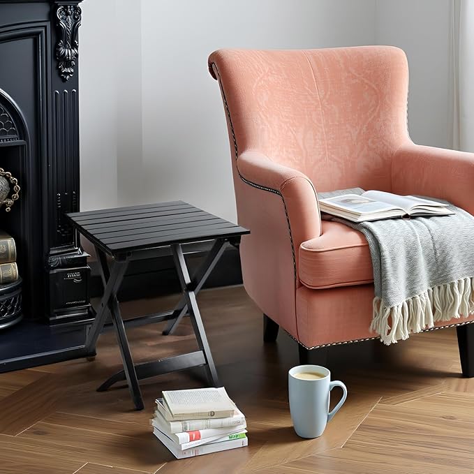 Small Wood End Square Table Outdoor Patio Side Folding Table Coffee Furniture for Living Room, Bedroom, Plant Stand, Camping Portable Black
