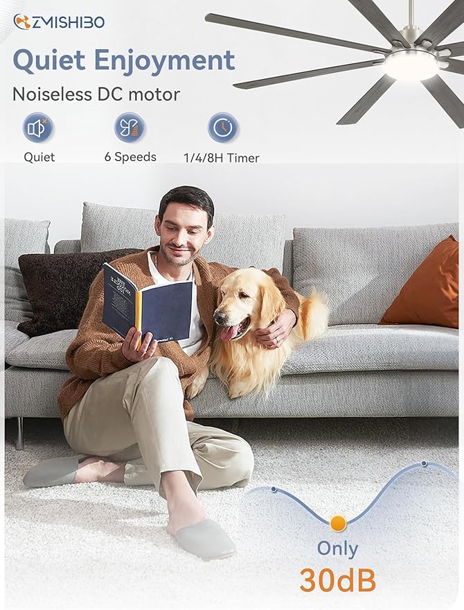 - Large ceiling fan: This 80-inch large fan is designed to meet the needs of spacious areas. Our farmhouse ceiling fan with light comes with dual-sided blades in brushed nickel and dark wood grey colors. You can choose different colored blades based on your home style and holidays. Equipped with 6/12/20-inch downrods, this ceiling fan is suitable for high ceilings and low ceilings. Additionally, this fan supports installation on a 15° sloped ceiling.