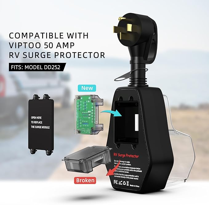 - REPLACEABLE SURGE MODULE DESIGN: Unlike standard RV surge protectors, VIPTOO features a removable internal surge module. After a major surge event, simply swap the module to restore full protection—no need to replace the whole unit. (Replacement modules sold separately. Please confirm compatibility before purchase.)