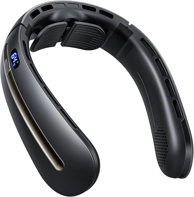 - LED Display & Long-Lasting Battery: Monitor the battery level and 4-speed settings via the LED display. Powered by a 5200mAh rechargeable battery, this portable neck fan provides up to 9 hours of use on a single charge.—perfect for all-day use.